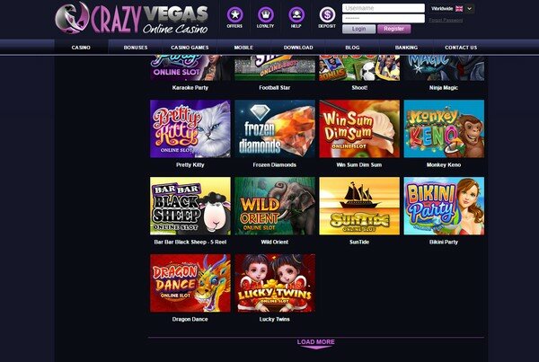 Being an exclusively Microgaming site may sound like the casino has limits on its gaming options, but on the contrary, Crazy Vegas is a hive of activity and possibilities just waiting to be discovered. Microgaming is one of the best software providers in the world and is consistent in its production of top class online casino games. In addition to an already diverse collection, Microgaming strives to release new titles on a monthly basis and has so far stuck to this promise. You will therefore always find something new and challenging within its selection of games, all featuring exquisite graphics and sound effects, smooth gameplay and plenty of winning features. The casino is home to over 650 Microgaming titles that are easily accessed through 1Click Instant Play technology or available to download. Some of the best titles include progressive jackpot games Mega Moolah and King Cashalot, while video pokies include Jurassic Park, Immortal Romance, Game of Thrones, Thunderstruck II and Break da Bank. There is honestly too many to list. Table game lovers will also have their fair share from which to choose, including classics like Roulette and Blackjack and a bunch of its variants like Blackjack Gold, Atlantic City Blackjack, French Roulette and Multi Player Roulette, to name a few. There are also other options like Baccarat, Craps and Sic Bo. Video poker fans can enjoy titles like Hold’em High Gold, 3 Card Poker, Caribbean Draw Poker Gold and much more.
