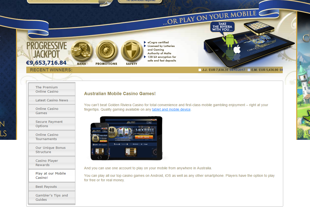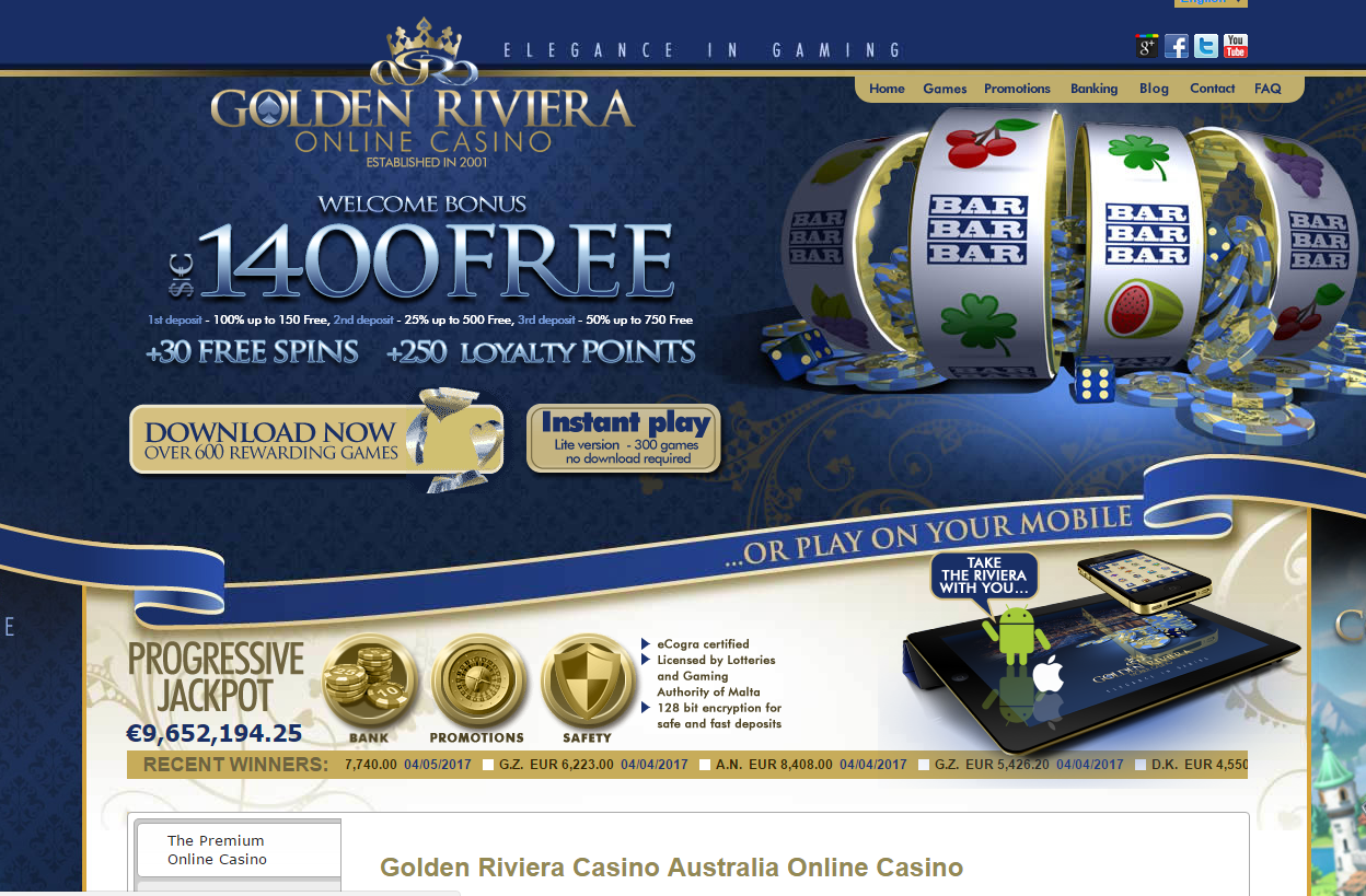 Golden Riviera Online Casino is one of the top rated casinos that cater to the Australian and New Zealand markets. The casino offers a wealth of gaming opportunities of which even the most discerning player would approve. The casino was established in 2001 and has since grown to become a premier gaming destination for both desktop and mobile gaming. In fact, the casino was voted one of Australia’s best casino for 2017 and is your one stop destination for online gambling. The casino has indeed solidified its reputation in the online gambling market thanks to a combination of top class services and offerings and some highly rewarding online gambling that is second to none.