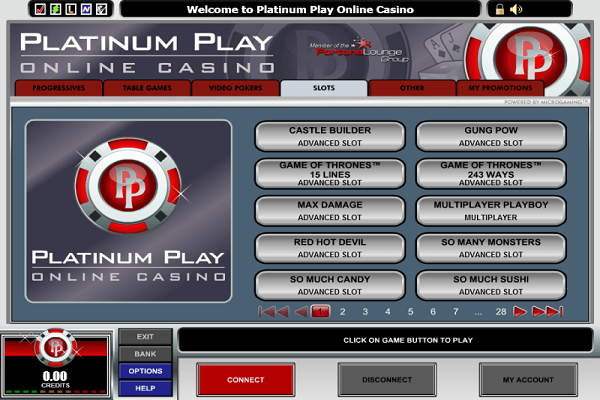Platinum Play is an online casino that has been around for a while. The casino is powered by Microgaming software so you know you are getting a top class gaming experience. In fact, with over 600 titles from which to choose, there will never be a dull moment at Platinum Play. The casino forms part of the Fortune Lounge group of casinos, one of the biggest casino groups focusing on Microgaming software in the industry. So if you thought you were in for a rocky experience, rest assured that Platinum Play is a casino worth its weight in gold. In addition to a solid backing by its operators and software provider, the casino is licensed and regulated by the Malta Gaming Authority and features an eCOGRA Seal of Approval guaranteeing fair and random results.